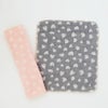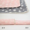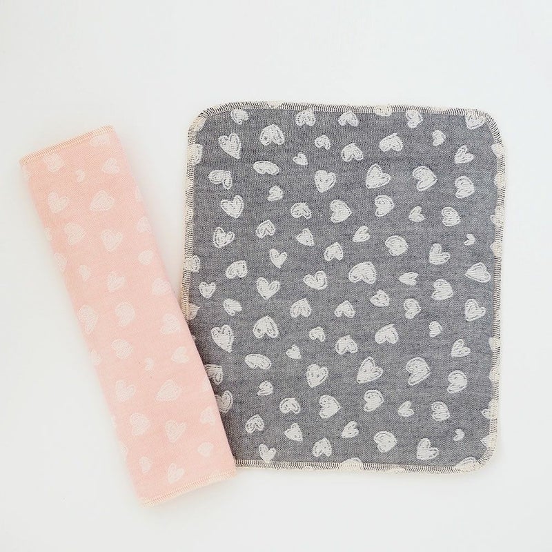 羽部分とパッドの表生地はハート柄をあしらったダブルガーゼを使用しています。ピンク(茜染)とグレー(ログウッド染)の2色からお選びいただけます。
