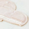 羽部分とパッドの表生地はハート柄をあしらったダブルガーゼを使用しています。ピンク(茜染)とグレー(ログウッド染)の2色からお選びいただけます。