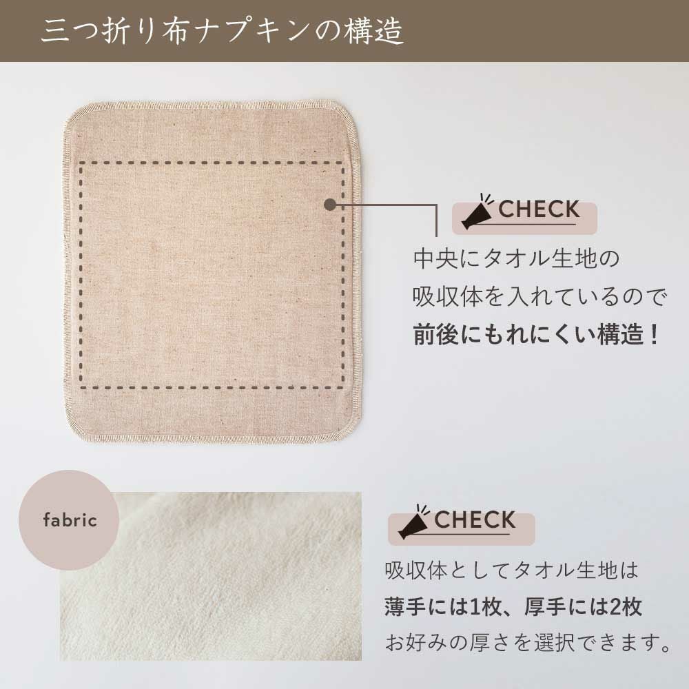 他の画像を見る 三つ折り布ナプキン【薄手】[同色3枚セット] [純オーガニックコットン100%]【WEB限定】 通常価格 ¥ 3,960 のところ セット価格 ¥ 3,740 税込 カートに入れる お気に入りに登録する