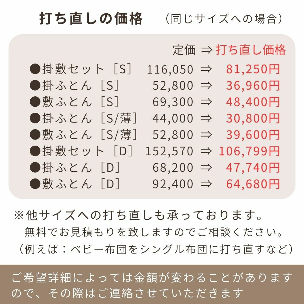 他の画像を見る 手作りの受注生産のため目安納期2か月程。 掛敷ふとんセット[シングル]【受注生産】 単品合計 ¥ 122,100 のところ セット価格 ¥ 116,050 税込 送料無料 カートに入れる お気に入りに登録する