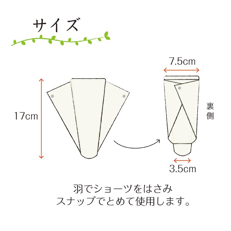 本体部分はオーガニックコットンのパイル生地と平織生地の3層構造、さらに、羽との重なりで5層になり ショーツの汚れをしっかりと防ぎます。 本体と羽を別構造にすることで、ナプキンがカラダに沿い、伝い漏れなどが少ないのが特徴です。