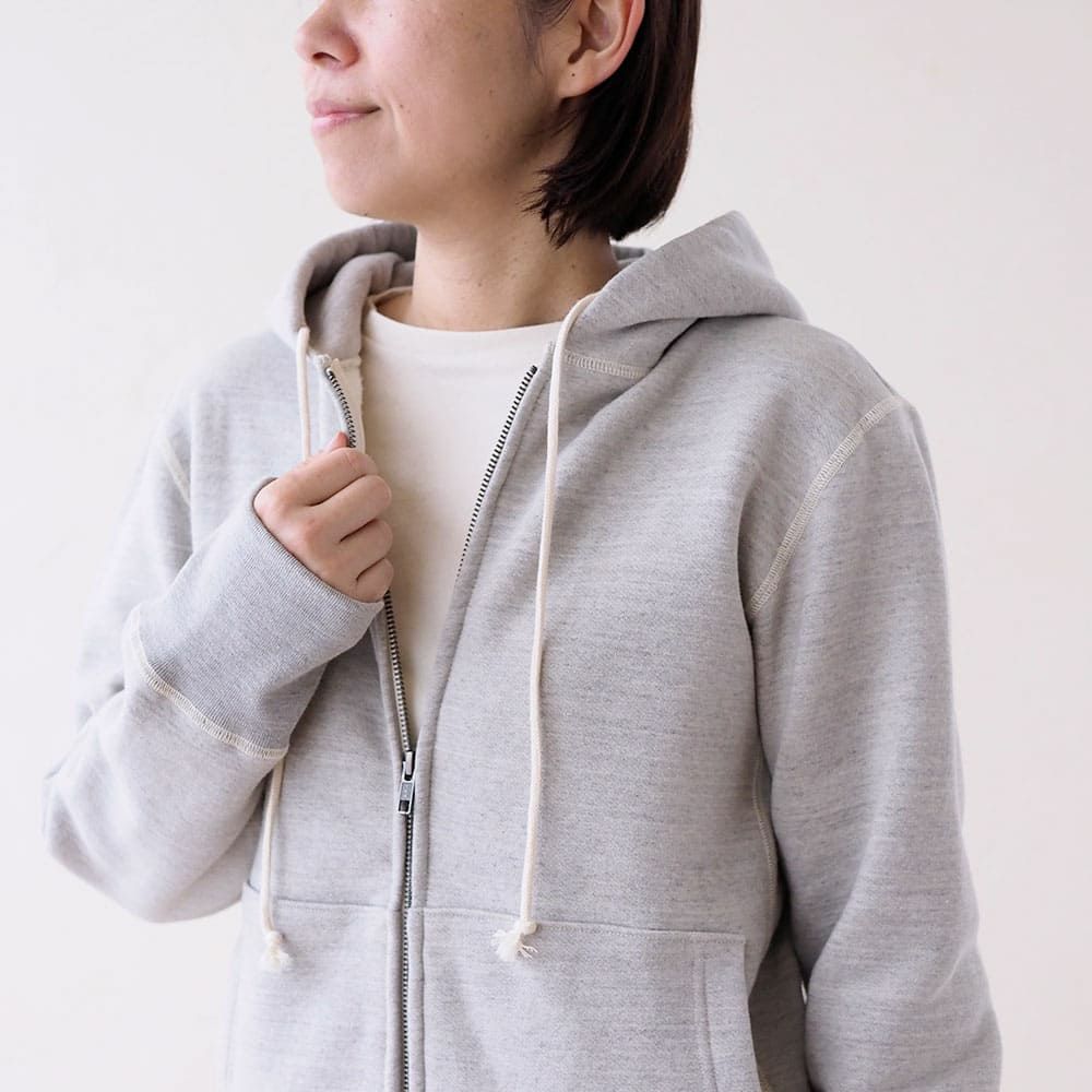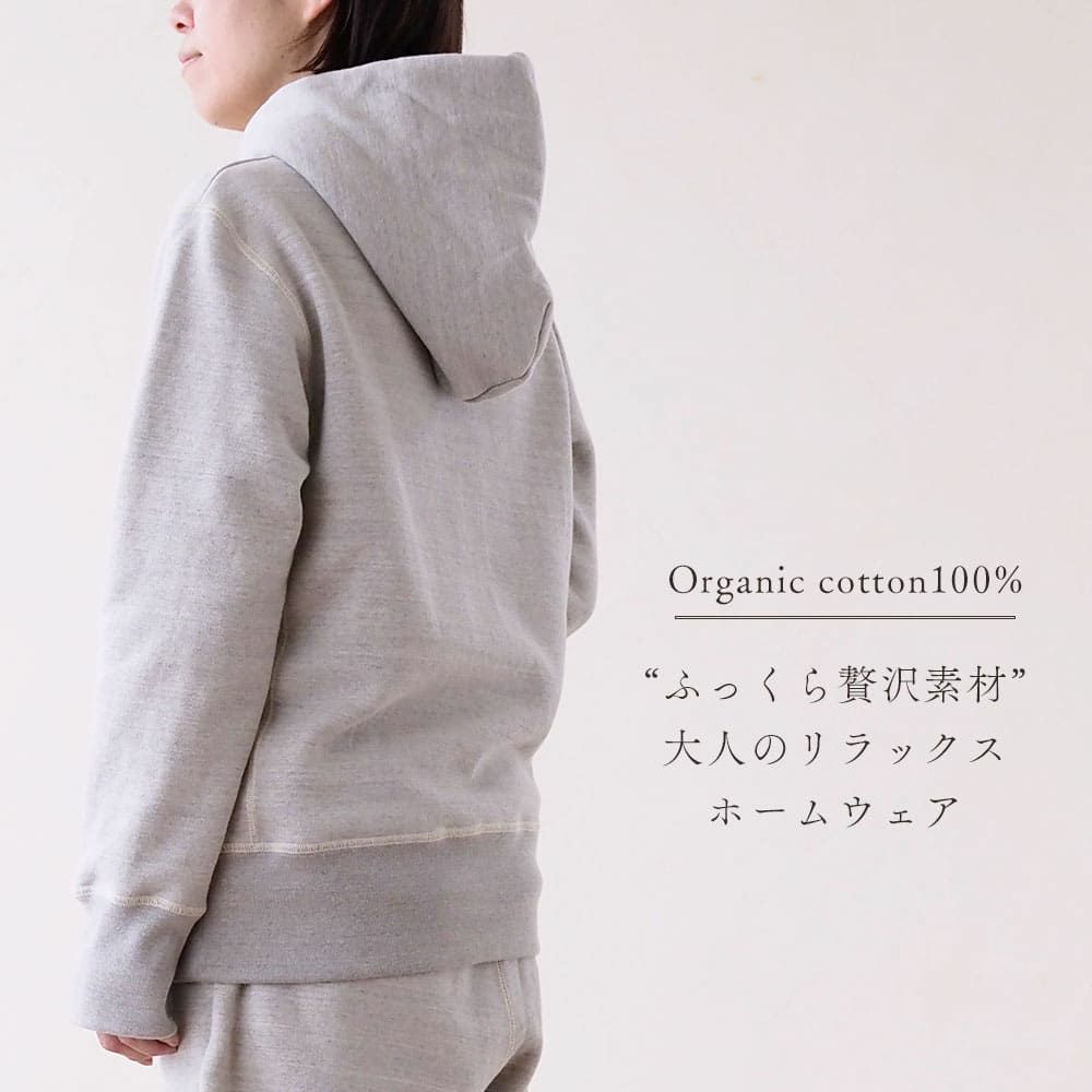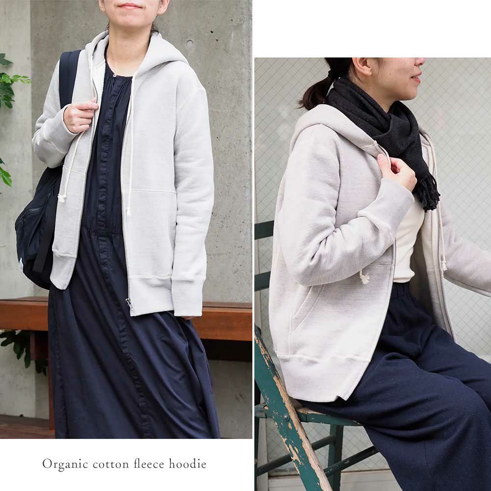 フードは2重仕立てでふっくら厚みのある仕上がり。ファスナーテープ部分は端をオーガニックコットンの綿テープでくるみ、丁寧に仕上げました。