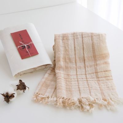 手つむぎ糸の和綿マフラー【チェック】【きなり×茶】のレビュー