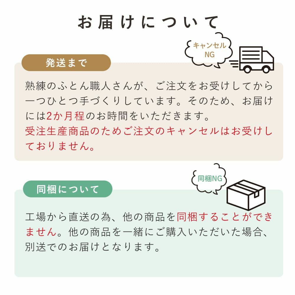 他の画像を見る 手作りの受注生産のため目安納期2か月程。 掛ふとん[ダブル]【受注生産】 販売価格 ¥ 68,200 税込 販売開始前です。 販売期間 2025/11/20 0:00 〜 2025/11/28 0:00 送料無料 カートに入れる お気に入りに登録する